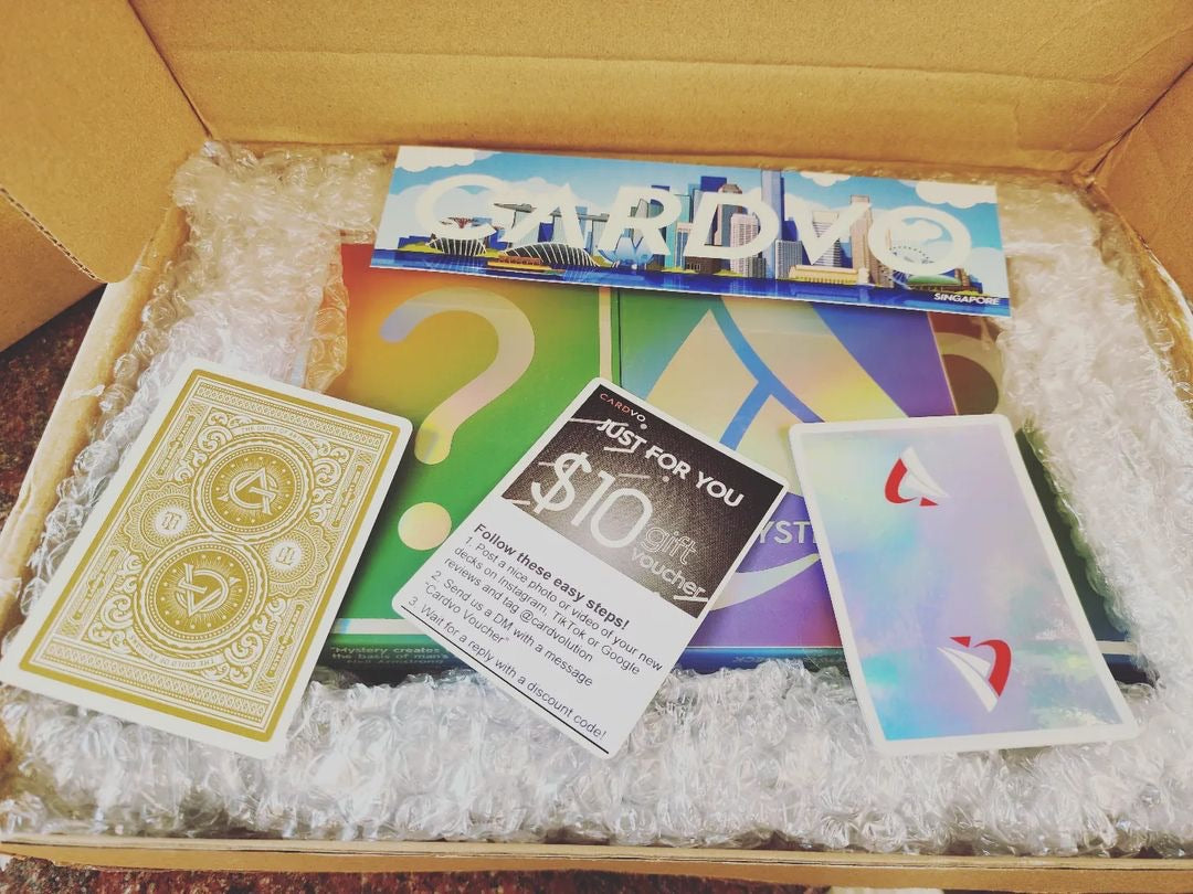 lowzhipengFirst time I convinced myself to get these mystery box/deck as I never liked how other sellers just use it as a method to clear unwanted stock. But damn am I happy with what I got from Cardvo's Mystery Deck and the packaging they come in are freaking great too 👍